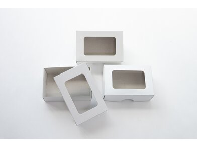 Weiße Boxen für Visitkarten bestehend aus 2 Teilen.